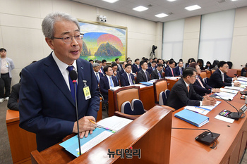 유국희 원자력안전위원장이 10일 국회에서 열린 과학기술정보방송통신위원회의 원자력안전위원회 등 국정감사에 출석해 의원들의 질문에 답하고 있다.