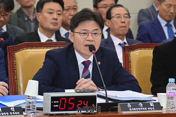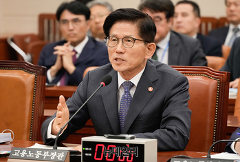 김문수 고용노동부 장관이 10일 오후 서울 여의도 국회 환경노동위원회의 고용노동부에 대한 국정감사에서 발언하고 있다.