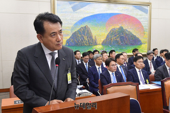 정길호 OK저축은행 대표가 10일 국회에서 열린 정무위원회의 금융위원회·한국산업은행·중소기업은행 등에 대한 국정감사에서 의원들의 질문에 답하고 있다.