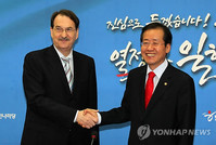 한나라당 홍준표 대표는 12일 샘 게로비치 주한 호주대사에게 “한일 양국 사이에 있는 바다 명칭을 일본해(Japan Sea) 뿐 아니라 동해(East Sea)로 병기해달라”고 요청했다.홍 대표는 이날 오전 국회 당대표실에서 게로비치 대사를 만나 “호주 지리 교과서 대부