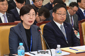 윤혜정 한국데이터산업진흥원장이 10일 국회에서 열린 과학기술정보방송통신위원회의 정보통신산업진흥원 등 국정감사에서 의원 질의에 답하고 있다.