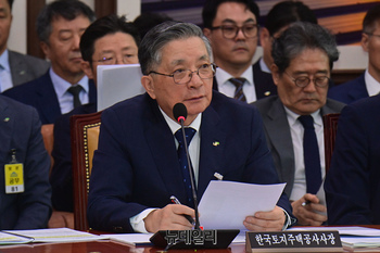 이한준 한국토지주택공사(LH) 사장이 10일 오전 국회 국토교통위원회에서 열린 한국토지주택공사 등에 대한 국정감사에서 질의에 답하고 있다.