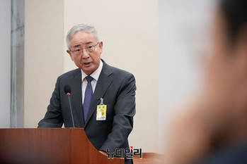 최금락 태영건설 부회장이 8일 서울 여의도 국회에서 열린 환경노동위원회의 환경부에 대한 국정감사에서 의원들의 질의에 답하고 있다.
