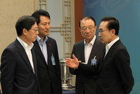 “(북한을) 때려잡아야 한다고 했을 때 김대중 전 대통령은 따뜻한 햇볕을 쬐어 변화시키자 했다. 이것이 원칙있는 포용정책이다.”손학규 민주당 대표는 26일 이날 국회에서 열린 ‘2012년 대선 승리, DJ 정신 어떻게 이어갈 것인가’ 토론회 축사에서 이같이 말했다. ‘