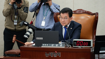 신정훈 위원장이 7일 오후 서울 여의도 국회에서 열린 국회 행정안전위원회의 행정안전부, 인사혁신처 등에 대한 국정감사에서 의사봉을 두드리고 있다.