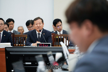 이상민 행정안전부 장관이 7일 오후 서울 여의도 국회에서 열린 국회 행정안전위원회의 행정안전부, 인사혁신처 등에 대한 국정감사에서 의원들의 질의에 답하고 있다.