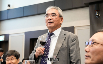 이영훈 교수가 4일 오후 서울 관악구 서울대학교 호암교수회관에서 열린 안병직 선생 미수 기념회에서 건배사를 하고 있다.