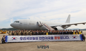 이스라엘군이 레바논에서 친이란 무장단체 헤즈볼라를 상대로 군사작전을 이어가는 가운데 레바논에 체류하던 국민 96명과 레바논인 가족 1명 등 총 97명이 정부가 투입한 군 수송기를 타고 5일 귀국했다.공군의 다목적 공중급유 수송기 KC-330 '시그너스'는 이날 낮 12