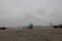 평창대표단 태운 귀국 비행기 축제분위기
