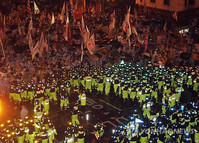 9일 저녁 부산역 광장에 집결, 집회를 마친 좌경-급진 노동운동세력 주축 '2차 희망버스 세력' 4천여명(경찰추산)은 가두시위를 하며 영도조선소 근처까지 진출, 경찰과 대치중이다.