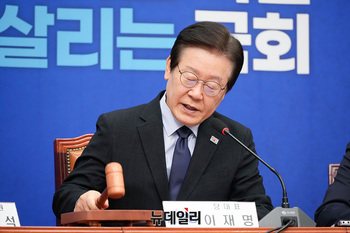 이재명 더불어민주당 대표가 30일 오전 서울 여의도 국회에서 열린 최고위원회의에서 속개선언을 하고 있다.