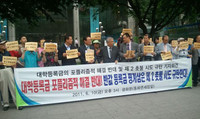 “반값 등록금, '광우 난동사태'로 둔갑시키지 마라.”반국가교육척결국민연합와 나라사랑실천운동 등 시민단체들은 10일 오후 광화문 동아일보사 앞에서 기자회견을 열고 “등록금이 살인적이라면 민주당이 가장 큰 책임을 져야 한다”고 주장했다.이들은 “살인 등록금은 김대중-노무