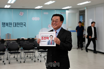 조전혁 서울시교육감 보궐선거 후보가 26일 오전 서울 종로구 서울시선거관리위원회에서 후보 등록을 하고 있다. 앞서 조 후보는 중도우파 후보단일화 통합대책위원회(통대위)의 단일화 여론조사에서 가장 높은 득표율을 기록하며 단일후보로 추대된 바 있다. 서울교육감 보궐선거는