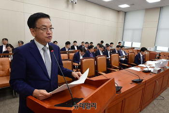 최상목 경제부총리 겸 기획재정부 장관이 8일 오전 국회에서 열린 기획재정위원회 전체회의에서 업무보고를 하고 있다.