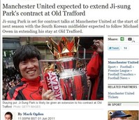 맨유가 박지성(30)에게 계약 연장을 기대하고 있다는 보도가 나왔다.영국 일간지 '더 텔레그래프' 인터넷판은 2일(한국시각) '맨유, 박지성과 계약 연장을 원하다'란 제목의 기사를 통해 "박지성은 2011-2012시즌 개막 직전에 맨유와 재계약을 논의할 예정이다"라고