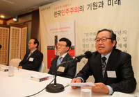 1987년 민주화는 민주화세력만의 결과물이었나? 첨예한 민주대 반민주 구도속에서 진보진영이 선점해 온 민주주의, 그 민주주의의 기원과 미래를 재조명한 ‘한국 민주주의의 기원과 미래(도서출판 시대정신)’ 출간기념회가 26일 오후 5시 서울 프레스센터 19층에서 열렸다.‘