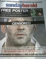 맨체스터 유나이티드의 미드필더 라이언 긱스(38)가 섹시스타 이모젠 토마스(29)와의 스캔들로 곤욕을 치르고 있다.스코틀랜드 언론인 선데이 헤럴드는 22일자 1면에 긱스의 얼굴 사진을 크게 게재했다. 눈 부분을 검정 띠로 가린 뒤 '검열(CENSORED)'이라는 문구를