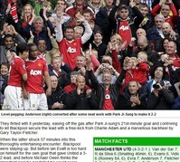 잉글랜드 프로축구 프리미어리그에서 뛰고 있는 '산소탱크' 박지성(30·맨체스터 유나이티드·이하 맨유)이 정규리그 최종전에서 눈부신 활약을 펼치며 한국인 프리미어리그 최다 공격포인트 기록을 경신했다.한국 시각으로 23일 영국 맨체스터 올드트래퍼드에서 열린 블랙풀과의 20