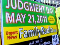 한국으론 22일인 미국의 21일, 이른바 '심판의 날(Judgment Day)'을 앞두고 불안심리가 확산되고 있다고 유코피아닷컴이 20일 전했다.지구종말론은 미국 캘리포니아주 오클랜드에 본부를 두고 있는 신흥종교단체 '패밀리 라디오'가 퍼뜨리고 있다. 캘리포니아주 인구