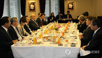 프랑스를 방문중인 이명박 대통령은 14일(현지 시간) 숙소호텔에서 프랑스 석학들과 조찬간담회를 했다. 파리 7대학에서 예술-문학-철학-고전학분야 명예박사 학위를 받은 다음 날 만나는 모임이라 눈길을 끌었다.간담회에는 기 소르망 문명비평가(67), 티에리 드 몽브리알 프