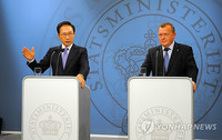 [코펜하겐=선종구 기자] 덴마크를 국빈 방문중인 이명박 대통령은 12일(현지 시간) 덴마크와 전략적 동반자 관계를 맺었다.이 대통령은 코펜하겐 시내 총리 집무실에서 라스 루커 라스무슨 총리와 정상회담을 갖고 ‘한-덴마크 전략적 동반자 관계 수립을 위한 공동성명’을 발표