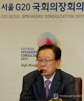 박희태 국회의장은 12일 “G20 국회의장회의를 계기로 한류 바람을 넘어 한류 태풍을 일으키겠다”는 포부를 밝혔다. 박 의장은 이날 오후 국회 제1접견실에서 열린 서울 G20 국회의장회의 세계 대진출 간담회에서 이같이 말하며 “G20 의회와의 관계를 긴밀하면서 대한민국