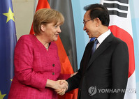 [베를린=선종구 기자] 독일을 방문중인 이명박 대통령은 9일 오후(현지 시간) 앙겔라 메르켈(56) 독일 총리와 정상회담을 갖고 녹색성장-신재생에너지 등 미래지향적 분야에서 구체 사업 발굴 등의 협력을 강화키로 합의했다.이 대통령과 메르켈 총리는 오는 7월부터 잠정 발