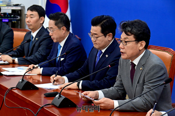 진성준 더불어민주당 정책위의장이 19일 오전 국회에서 열린 정책조정회의에서 모두발언을 하고 있다.