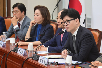 한동훈 국민의힘 대표가 19일 오전 국회에서 열린 최고위원회의에서 모두발언을 하고 있다.