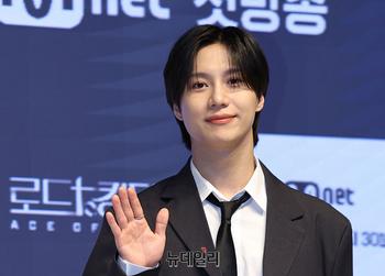 단독 MC를 맡은 태민이 19일 오전 서울 강남구 엘리에나 호텔에서 열린 Mnet '로드 투 킹덤 : ACE OF ACE' 제작발표회에서 포즈를 취하고 있다. '로드 투 킹덤'은 K-POP 보이그룹 라이징 프로젝트로 그룹을 재조명하는 서바이벌 프로그램이다. 더