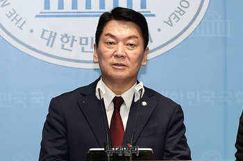 안철수 국민의힘 의원이 12일 오전 국회 소통관에서 의정 갈등 관련 기자회견을 하고 있다. 이날 안 의원은 "2025년도 의대 증원 1년 유예를 결단하고 의사, 정부, 전문가 등이 참여하는 공론화위원회를 만들어야 한다"고 촉구했다.
