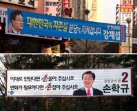 4.27 재보궐선거가 일주일 앞으로 다가온 가운데 최대 격전지로 꼽히는 성남 분당을에서 강재섭 한나라당 후보와 손학규 민주당 후보가 치열한 접전을 펼치고 있다. 강재섭 후보는 한나라당 지도부의 적극적 지원을 등에 업었고, 손학규 후보는 당색을 자제한 채 ‘나홀로’ 인물