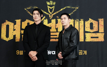 방송인 이동규와 윤비가 11일 오전 서울 마포구 상암스탠포드호텔에서 열린 웨이브 오리지널 '여왕벌 게임' 제작발표회에서 포즈를 취하고 있다. 서바이벌 프로그램 ‘여왕벌 게임’은 여왕벌 6인이 지배하는 세계관 속에서 여성 리더 1인과 남성 팀원 3인이 팀을 이뤄