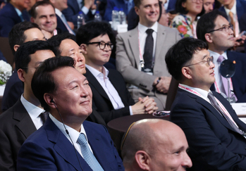 尹 "가짜뉴스와 거짓 선동 위협 … 자유세계 굳게 연대해야"