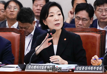 오영주 중소벤처기업부 장관이 9일 오전 서울 여의도 국회에서 열린 산업통상자원중소벤처기업위원회 전체회의에서 의원들의 질문에 답하고 있다.