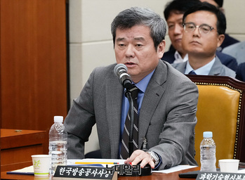 박민 KBS 사장이 9일 오전 서울 여의도 국회에서 열린 과학기술정보방송통신위원회 전체회의에서 의원들의 질의에 답하고 있다.