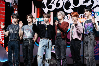 그룹 보이넥스트도어(BOYNEXTDOOR)가 9일 오후 서울 용산구 블루스퀘어 마스터카드홀에서 열린 세 번째 미니 앨범 '19.99' 발매 기념 쇼케이스에서 포즈를 취하고 있다. 이번 앨범은 타이틀곡 '나이스 가이'를 포함해 7곡을 담았다. 음원은 오후 6시