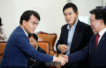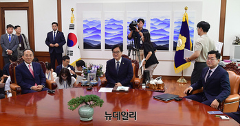 [포토] 회동 갖는 여야 원내대표와 국회의장