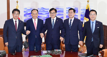 [포토] 한자리에 모인 국회의장과 여야 원내대표