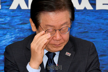 [포토] 안경 고쳐 쓰는 이재명 민주당 대표