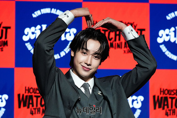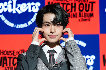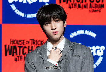 그룹 싸이커스(xikers) 헌터가 5일 오후 서울 마포구 신한카드 SOL페이 스퀘어에서 열린 미니4집 '하우스 오브 트리키 : 워치 아웃(HOUSE OF TRICKY : WATCH OUT)' 발매 기념 쇼케이스에서 포즈를 취하고 있다.이번 앨범은 타이틀곡 '위치'를