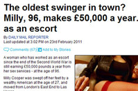 96세 할머니가 현역 콜걸?100살을 코앞에 둔 할머니가 아직도 콜걸을 하고 있으며 연수입이 5만 유로(약 9000만원)이라고 영국 데일리메일이 최근 전했다.