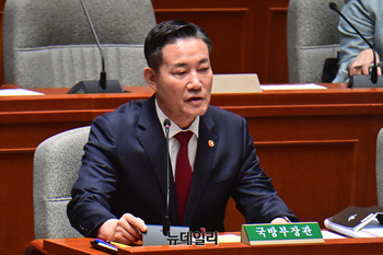신원식 국방부장관이 2일 오전 국회에서 열린 예산결산특별위원회 전체회의에서 의원들의 질문에 답하고 있다.