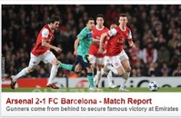 아스날, 바르셀로나에 2-1 짜릿한 역전승