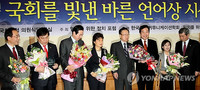 박근혜 한나라당 전 대표가 16일 국회 의원식당에서 열린 ‘국회를 빛낸 바른 언어상 시상식’에 참석해 “과학 비즈니스벨트는 대통령의 약속인 만큼 책임져야 한다”고 밝혔다. 이어 “동남권 신공항도 대선공약으로 약속 한 것”이라고 덧붙였다.