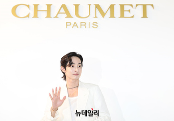 세븐틴 조슈아가 4일 오후 서울 강남구 코엑스에서 개막한 프리즈 서울 쇼메(CHAUMET) 라운지에서 포즈를 취하고 있다. 프랑스 하이주얼리 브랜드 쇼메는 프리즈 서울에 참가해 현대 예술을 통한 자연의 아름다움을 기린다. 특히 라운지에는 김희찬 작가의 새로운 작품이 공