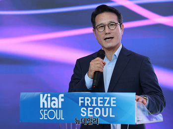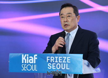 정병국 한국문화예술위원장이 4일 오전 서울 강남구 코엑스에서 열린 키아프 서울·프리즈 서울 2024 개막식에서 인사말을 하고 있다. 프리즈 서울은 7일까지, 키아프 서울은 8일까지 각각 진행된다.