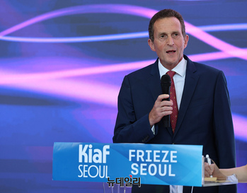 사이먼 폭스 프리즈 CEO가 4일 오전 서울 강남구 코엑스에서 열린 키아프 서울·프리즈 서울 2024 개막식에서 인사말을 하고 있다. 프리즈 서울은 7일까지, 키아프 서울은 8일까지 각각 진행된다.