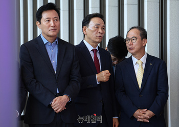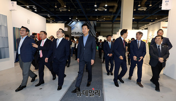 오세훈 서울시장과 주요 참석자들이 4일 오전 서울 강남구 코엑스에서 열린 키아프 서울·프리즈 서울 2024 개막식 직후 전시장을 관람하고 있다. 프리즈 서울은 7일까지, 키아프 서울은 8일까지 각각 진행된다.