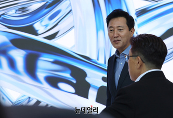 오세훈 서울시장이 4일 오전 서울 강남구 코엑스에서 열린 키아프 서울·프리즈 서울 2024 개막식에서 축사를 하고 있다. 이날 개막한 프리즈 서울은 7일까지, 키아프 서울은 8일까지 각각 진행된다.